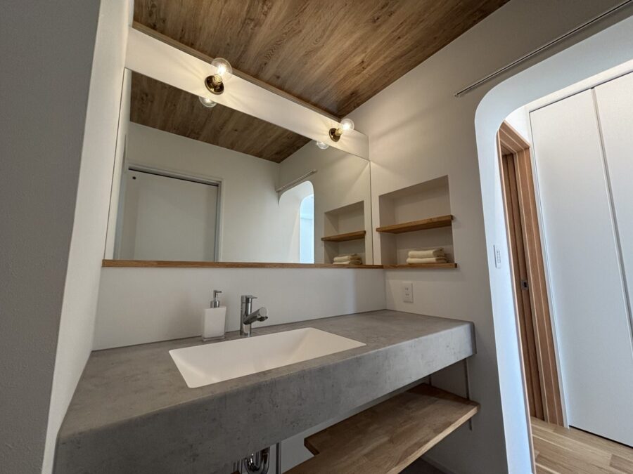 過去施工写真:幅1.5mの洗面、一面鏡やニッチを取り入れました