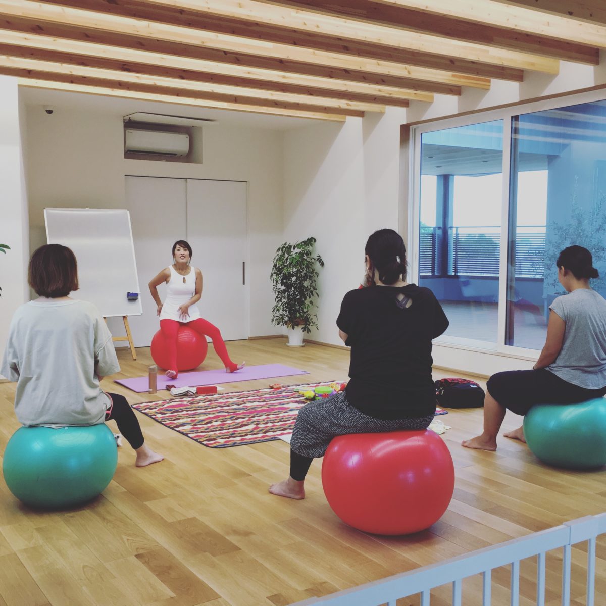 野島建設 バランスボール 講習 髪口さん