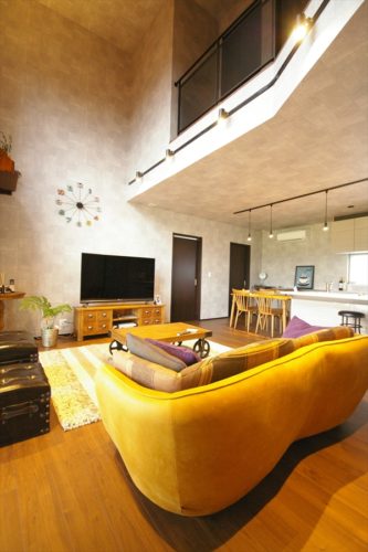 ビンテージテイストの家具が似合う、シンプルデザインの二世帯住宅